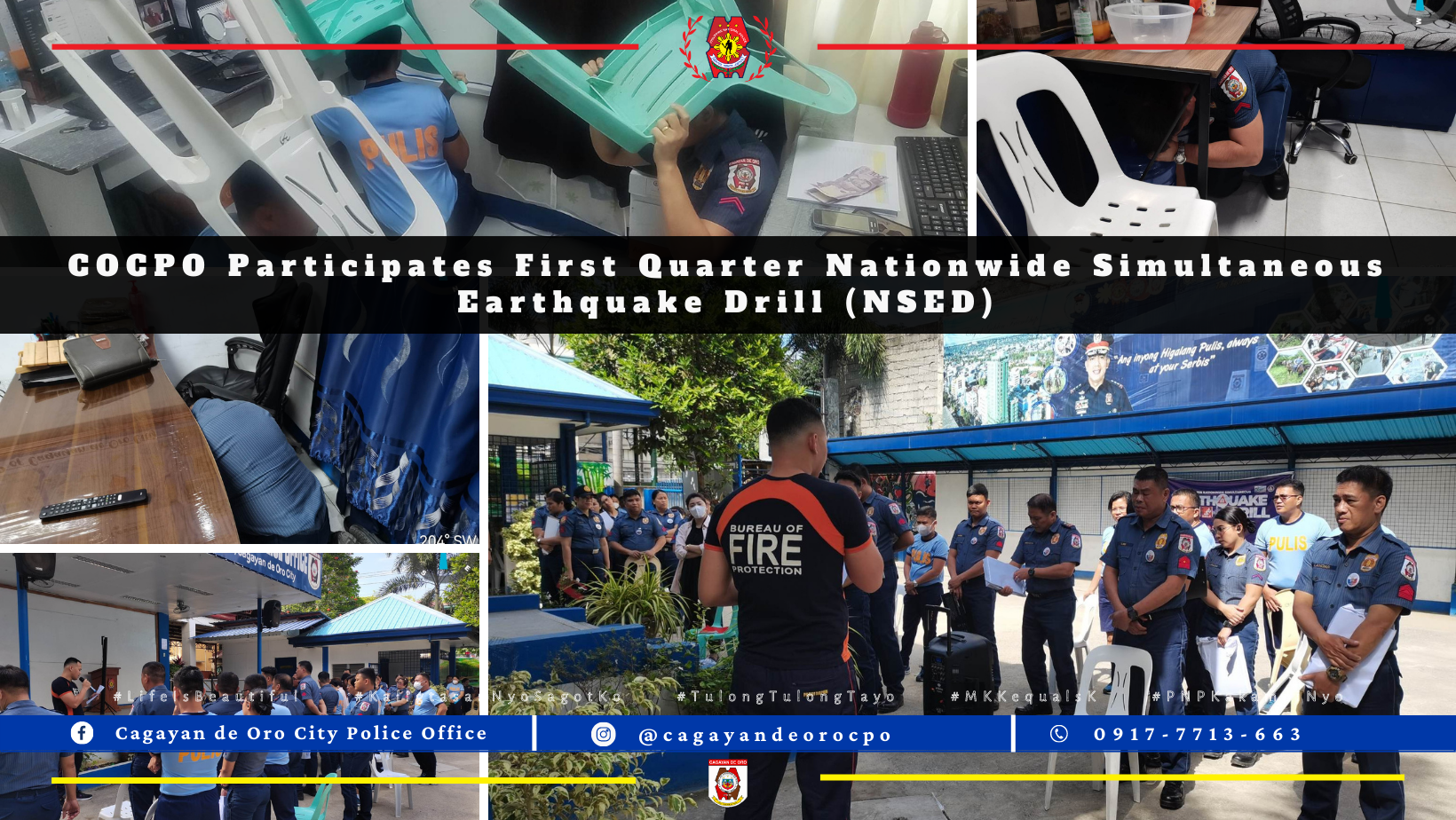 On March 9, 2023, 2:00 PM, CAGAYAN DE ORO CITY POLICE OFFICE participated on the 1st Quarter National Simultaneous Earthquake Drill this year.