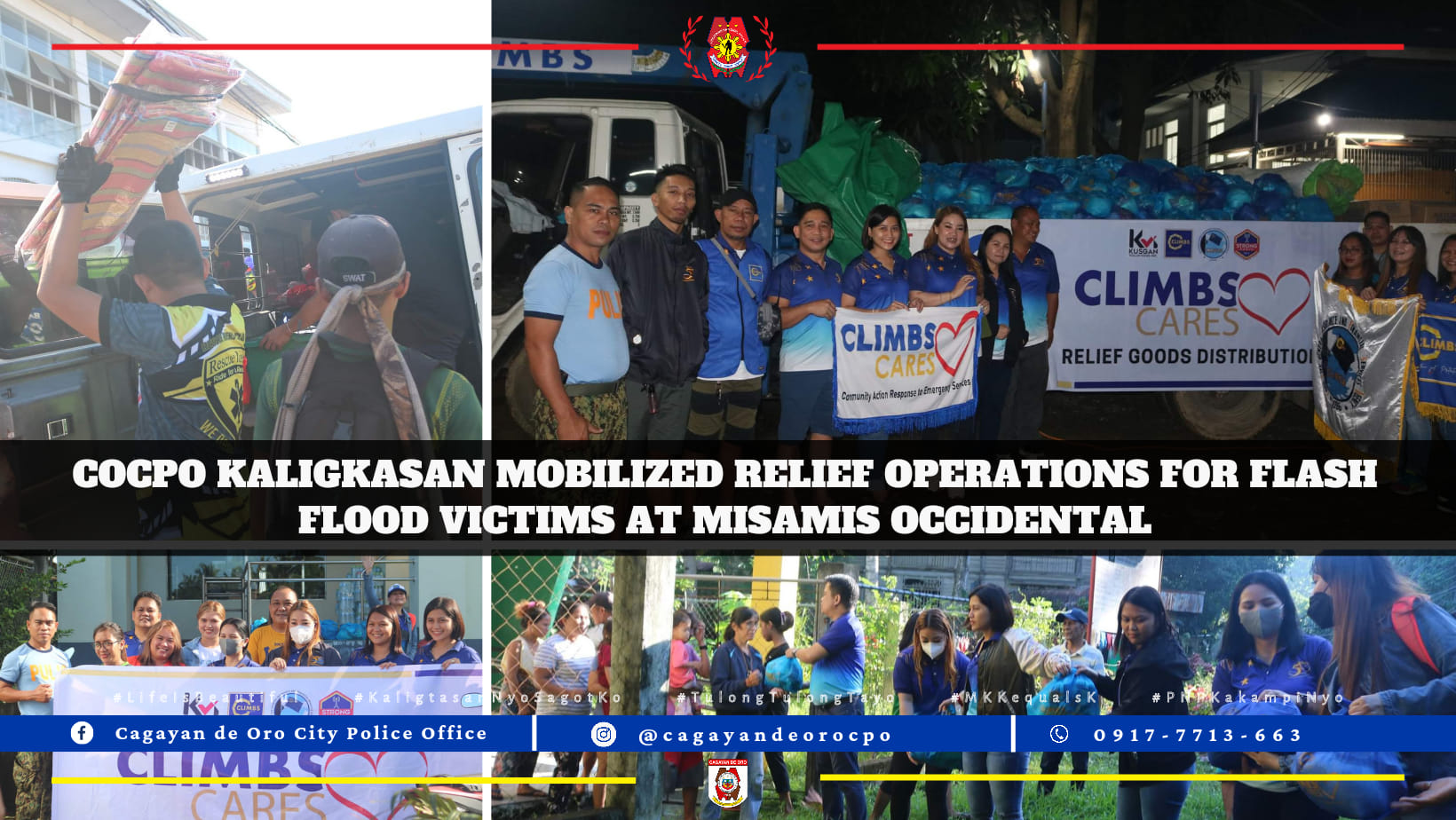 PCOL AARON M MANDIA and the whole COCPO KALIGKASAN Advocacy Support Group expressed gratitude to all the officers and staff of the different organizations who generously voluntered their presence to the said relief operations: Mr. Reynan Diaz VP for Mktg CLIMBS Cares, Engr Charles Magarin, Chief, Relief Operations CLIMBS, Mr. John Michael Bustamante, scooper and live coverage on the relief operations.