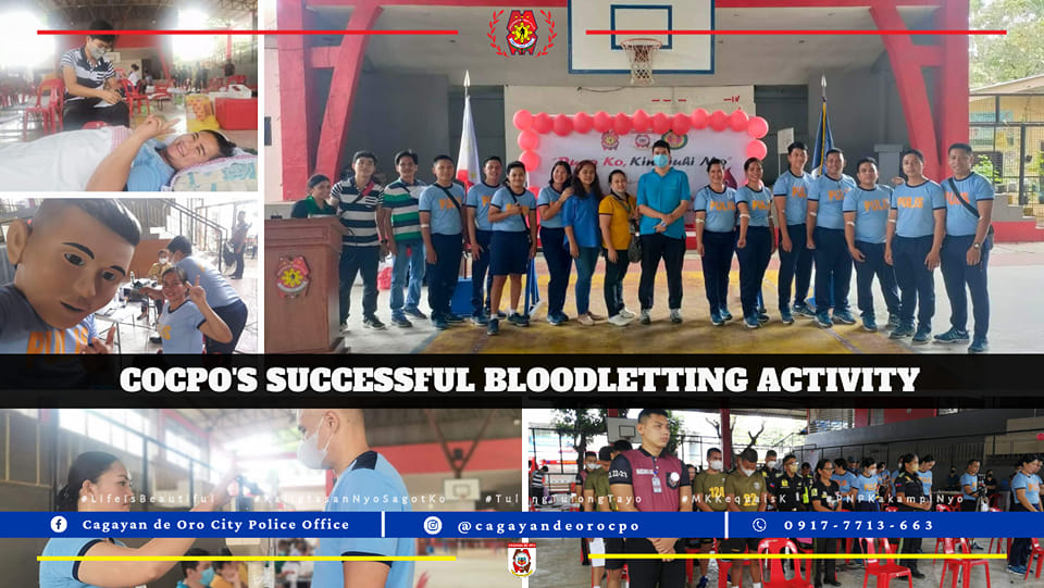On February 16, 2023, at 8:30 AM, COCPO personnel under the leadership of PCOL AARON M MANDIA, City Director conducted a Bloodletting Activity dubbed as “Dugo Mo, Kinabuhi Ko” in partnership with the Blood Bank, Northern Mindanao Medical Center.