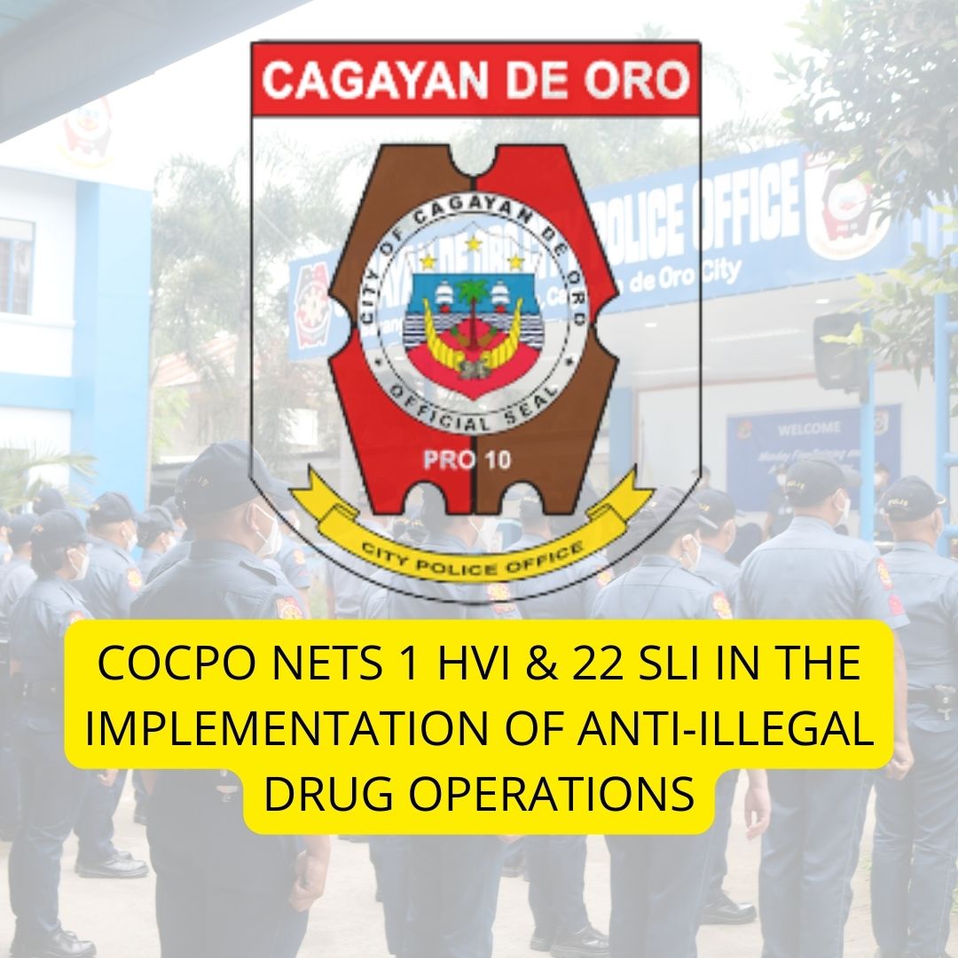 Cagayan de Oro City Police Office – PCOL AARON M MANDIA, City Director, COCPO reported to PBGEN LAWRENCE B COOP, Regional Director, PRO 10 the arrest of 23 persons of which 1 was classified as High Value Target (HVI) and 22 SLI covering the period from March 26 to April 1, 2023.
